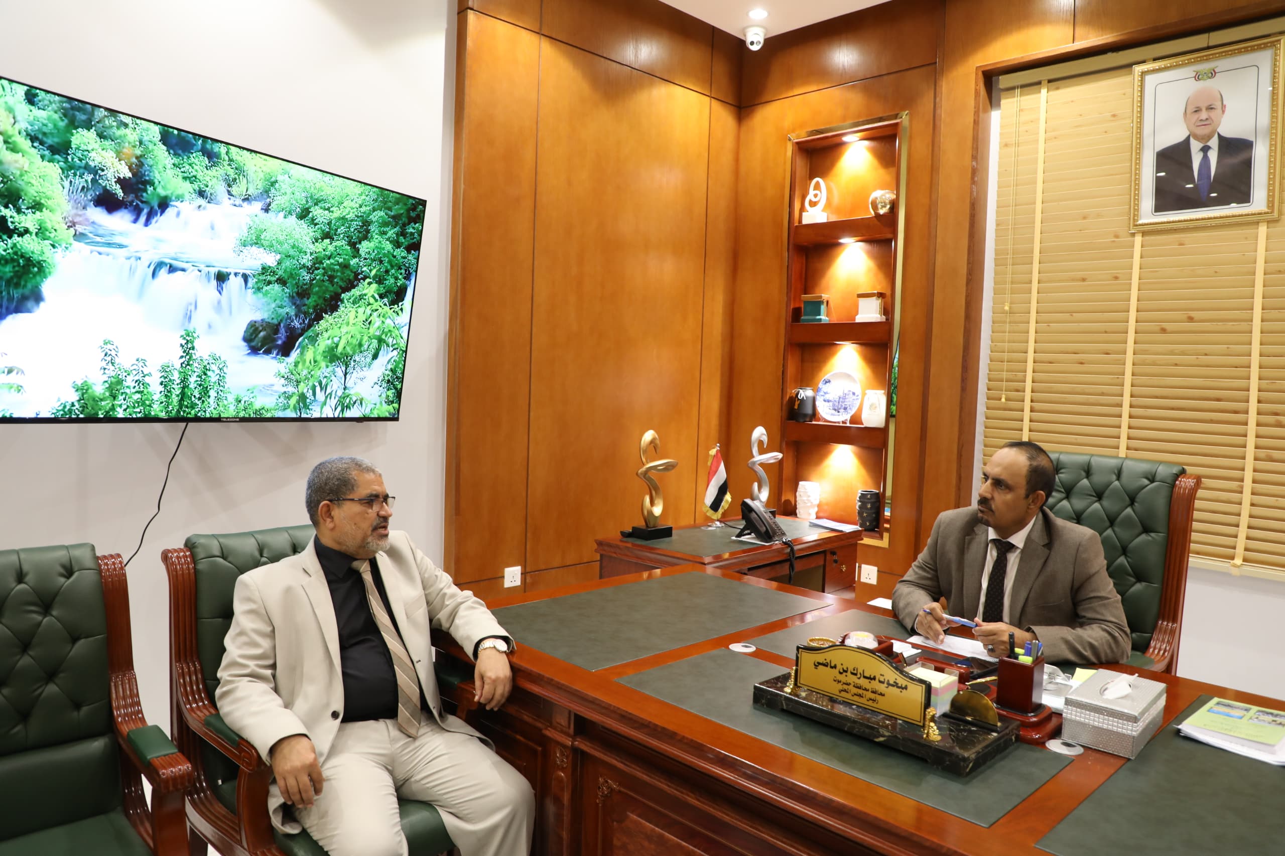 بحث محافظ حضرموت الأستاذ مبخوت مبارك بن ماضي، اليوم بالمكلا، مع رئيس جامعة حضرموت الدكتور محمد سعيد خنبش، خطط الجامعة في جانب التعليم الجامعي والبحث العلمي للعام القادم 2025م، وتعزيز التعاون العلمي مع الجامعات العالمية.