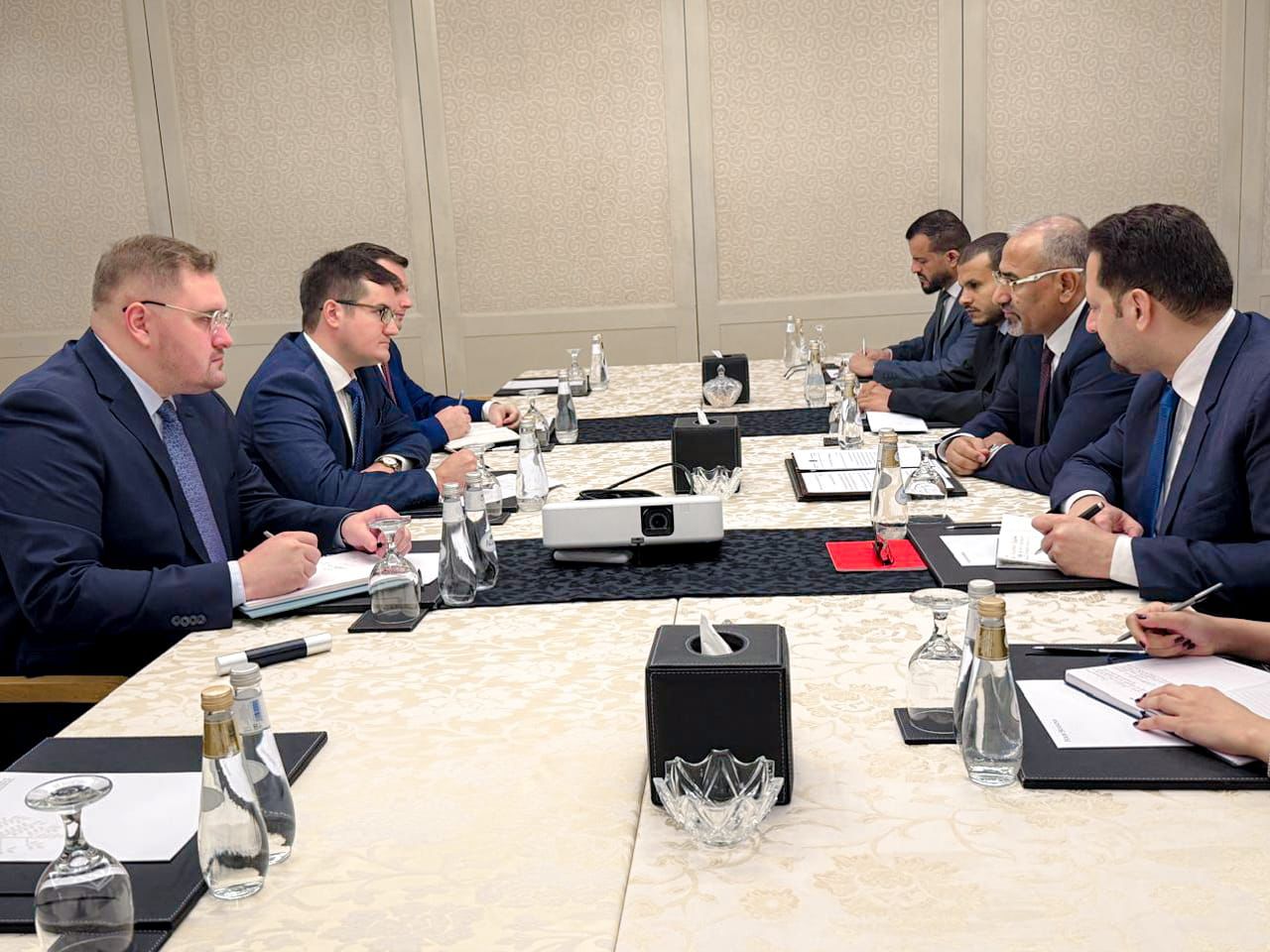 التقى عضو مجلس القيادة الرئاسي، اللواء عيدروس قاسم الزُبيدي، اليوم، القائم بأعمال السفير الروسي لدى اليمن، الدكتور يفغيني كودروف.