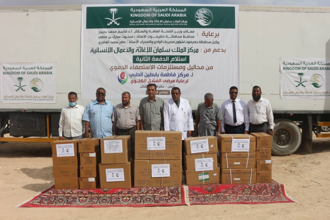 من جانبه، تحدث الأستاذ / مساعد سعيد برويشد مدير مراكز فاطمة بابطين، استلمنا اليوم محاليل ومستلزمات الاستصفاء الدموي لمركز فاطمة بابطين الطبي القطن، حيث تعتبر هذه المنحة مكملا للدفعة الثانية، مشيراً إلى أن هذا الدعم الذي يأتي بشكل مستمر من مركز الملك سلمان، سيُمكّن المراكز من استمرارية العمل بها وتقديم المساعدة والخدمات لمرضى الفشل الكلوي.