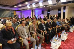 وقال المحافظ “نلتقي اليوم على درب من دروب العطاء في هذا التجمع الكبير الذي يضم نخبة من الخبراء والاستشاريين للتشاور والتضامن للمضي في المشاريع التنموية المستدامة التي يعود نغعها على جميع محافظات الوطن، نلتقي في مدينة المكلا لنبعث رسالة مفادها الأمل لخدمة مجتمعاتنا بمشاريع مستدامة”.