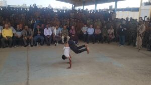 واستعرض في الحفل، عدداً من الفقرات الفنية والغنائية والأناشيد والقصائد الشعرية الحماسية وعرض مسرحي قدمها طلاب الثانوية المعبرة عن هذه المناسبة، وكذا لعبة الجمباز، والتي نالت استحسان واعجاب الحاضرين جميعاً.