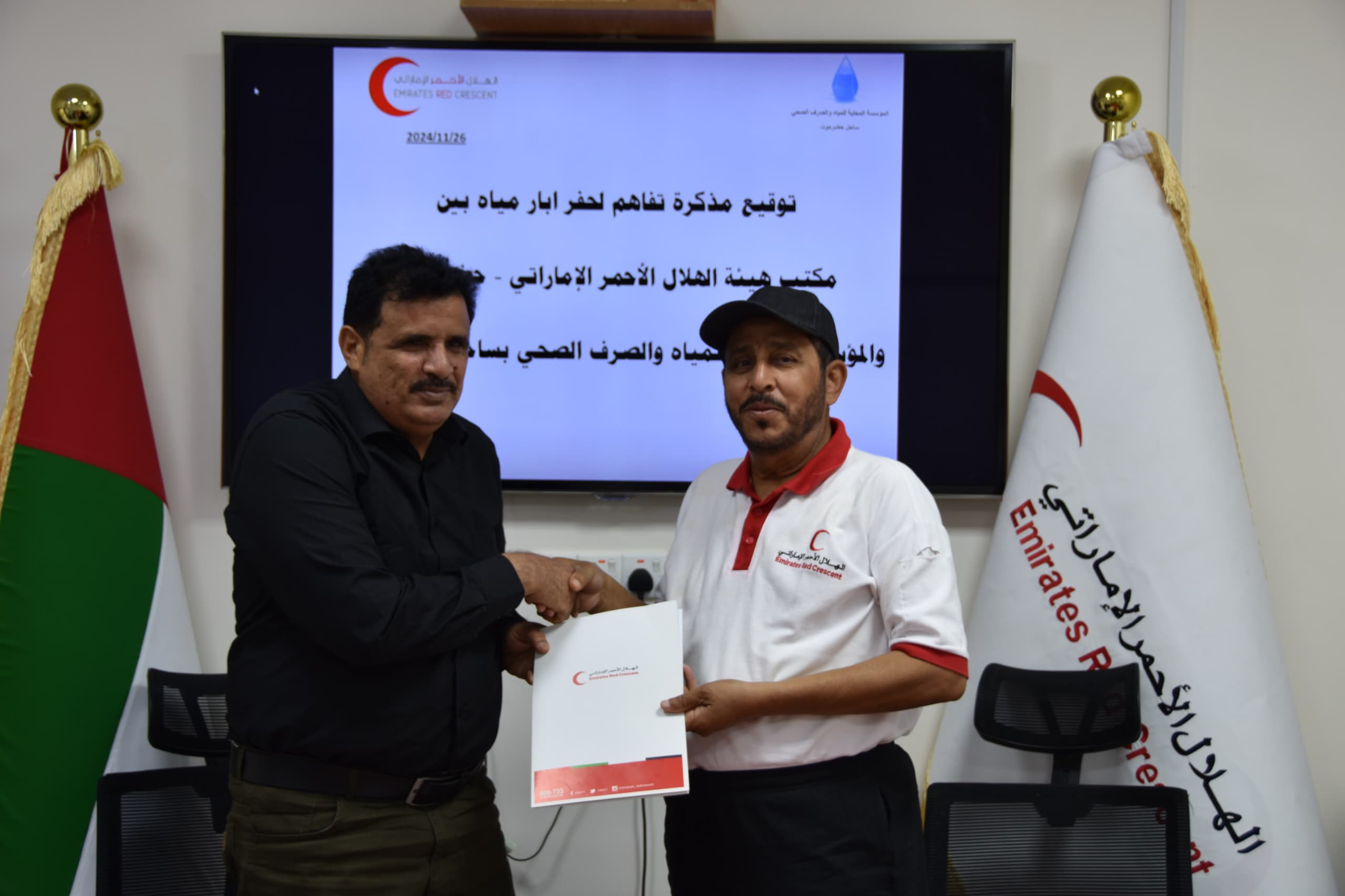 جرت مراسم التوقيع على هذه الاتفاقية بمقر الهيئة بمدينة المكلا بحضور سعادة حميد راشد الشامسي، مستشار التنمية والتعاون الدولي ممثل هيئة الهلال الأحمر الإماراتي بمحافظة حضرموت، و المهندس عمر أحمد الجفري، مدير عام مؤسسة المياه والصرف الصحي، وتهدف هذه المذكرة إلى حفر آبار مياه جديدة، مما سيساهم في تحسين البنية التحتية للمياه وتوفير مصادر مياه مستدامة للمجتمعات المحلية.