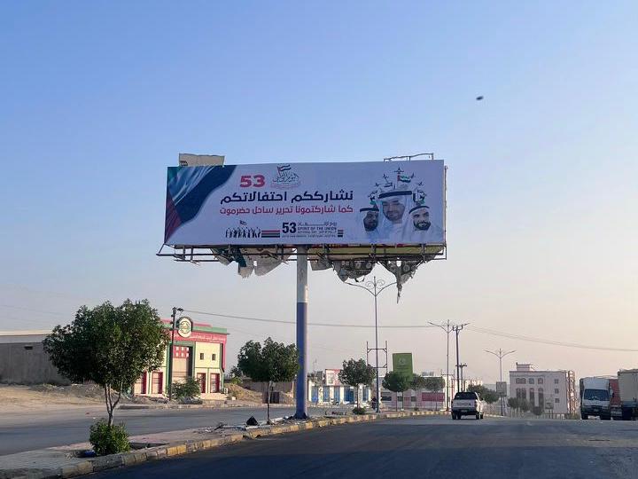 قامت محافظة حضرموت بتشيد لوحات عملاقة في مديريات المكلا – والشحر – وغيل باوزير تعبيراً عن الشكر والتقدير للدور الإماراتي الكبير في محافظة حضرموت، ضمن مشاركة الأشقاء في دولة الإمارات العربية المتحدة احتفالاتهم باليوم الوطني “عيد الإتحاد 53”.