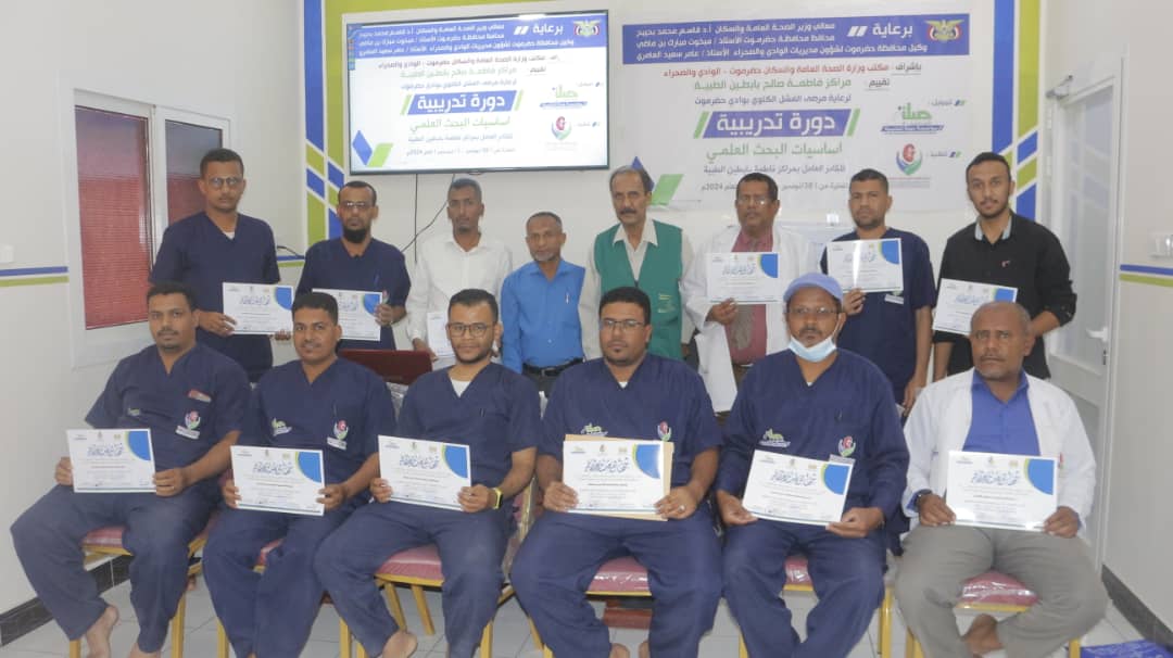 اختتمت اليوم، بمديرية القطن محافظة حضرموت، الدورة التدريبية حول “اساسيات كتابة البحث العلمي” والتي نظمتها إدارة مراكز بابطين الطبية بأشراف مكتب وزارة الصحة العامة والسكان وتمويل مؤسسة صلة للتنمية .
