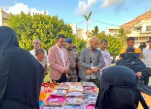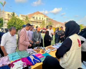 وكان قد طاف مدير عام الشؤون الاجتماعية، ومعه منسق كتلة العنف القائم على النوع الاجتماعي الأستاذ أحمد شرف، والمقدم علي عليان مدير إدارة التوجيه المعنوي بشرطة ساحل حضرموت، ورئيس اللجان المجتمعية بمديرية المكلا الأستاذ عبدالله بن علي الحاج، وعدد من الشخصيات النسوية القيادية، بأركان البازار الذي تشارك فيه النساء الناجيات من العنف، ومجموعة من منظمات المجتمع المدني المشاركة، متعرفين على ما تضمن البازار من أركان مختلفة منها المأكولات، والخياطة والتطريز، والأكسسورات، والبخور والعطور، وادوات التجميل، والمنظفات، وأركان أخرى.