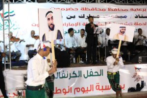 شهدت مدينة المكلا مساء يوم الاثنين 2 ديسمبر احتفالًا فنيًا وكرنفاليًا بمناسبة اليوم الوطني الـ53 لدولة الإمارات العربية المتحدة، نظمته الحملة الشعبية لشكر دولة الإمارات بحضرموت، برعاية كريمة من السلطة المحلية بمحافظة حضرموت.