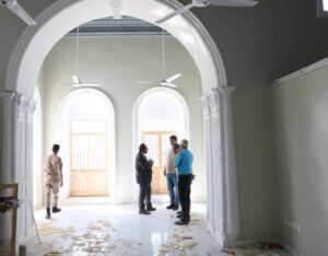 وتعرف المحافظ على حجم العمل المنجز في اعادة تأهيل المبنى المتضرر من القصف الذي شهده ديوان المحافظة إبان تنظيم القاعدة عام 2015م، واعمال التشطيب واعادة التأهيل التي تجري على مستوى عالٍ بهدف تهيئة الظروف المناسبة لعمل الادارات المختلفة لمكتب وزارة المالية بوصفه مكتبًا حيويًا بالمحافظة.