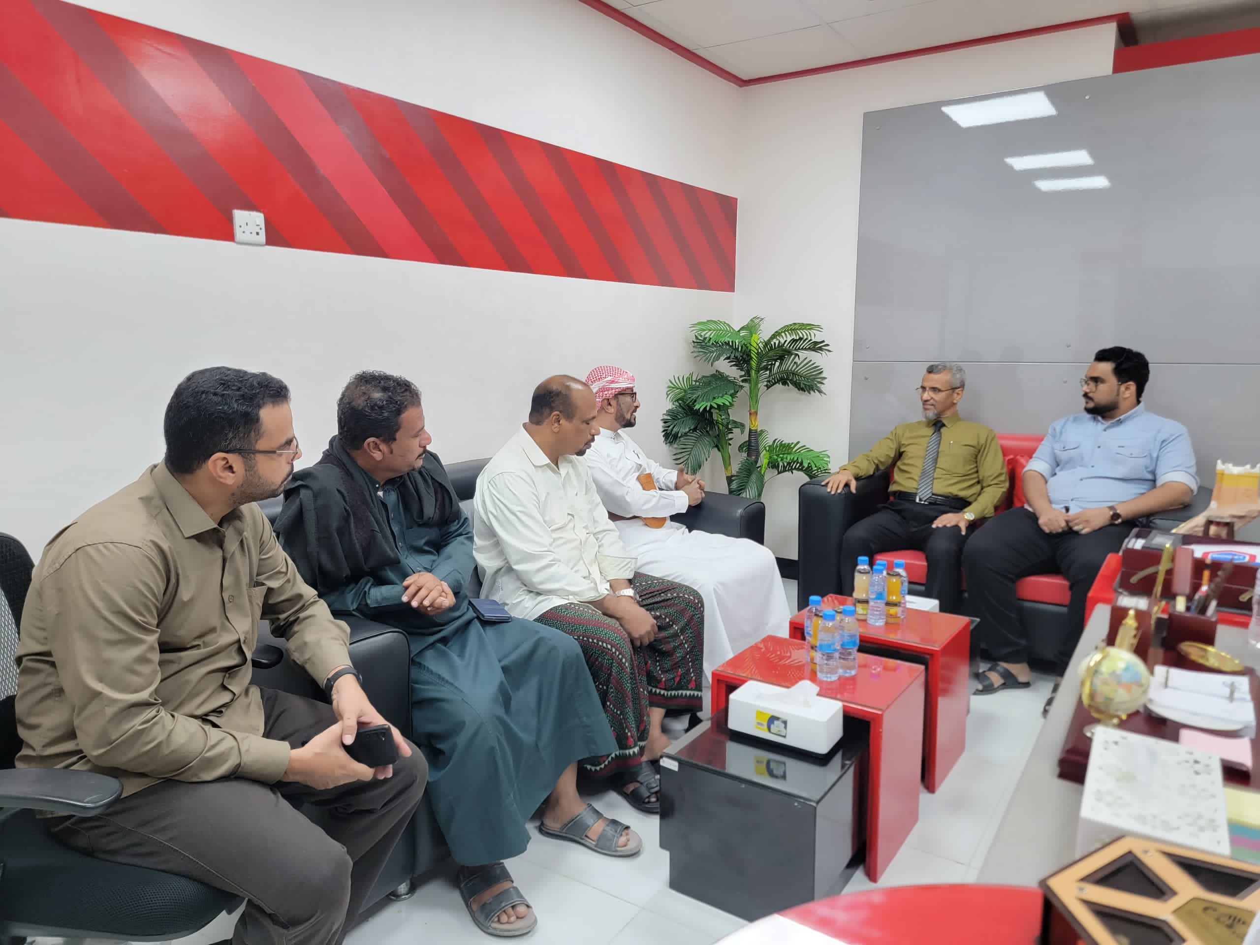 بحث مدير عام مديرية شبام الأستاذ طارق طالب فلهوم مع المدير التنفيذي لمؤسسة العون للتنمية الدكتور عبداللاه عبدالقادر بن عثمان سبل تدخلات المؤسسة في مصفوفة المشاريع المهنية بالمديرية .