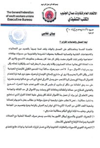 صادر عن الاتحاد العام لنقابات عمال الجنوب