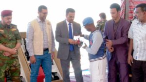 هذا وجرى تسليم عدداً من الصيادين المستفيدين، مفاتيح محركات الإبحار إلى جانب، لوحة ترقيم للقارب، ورخصة مزاولة المهنة للمستفيد، تم استخراجها بتنسيق مع قوات خفر السواحل بساحل حضرموت ليتمكن المستفيدين من الإستفادة من المشروع بصورة أكثر نموذجية في تطبيق النظام والقانون أثناء مزاولة المهنة.