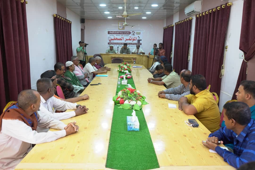 نظمت لجنة مهرجان زيارة الهدار بالقطن وبرعاية المدير العام للمديرية رئيس المجلس المحلي المشرف العام للمهرجان الأستاذ/ عبداللطيف محمد النقيب صباح اليوم الخميس 5 ديسمبر الجاري بقاعة الاجتماعات بديوان السلطة المحلية بالدوائر الحكومية مؤتمر صحفي لإعلان برنامج وفعاليات المهرجان للموسم “158” للعام 1446ه بحضور الامين العام للمجلس المحلي بالمديرية الأستاذ محمد عوض بلعجم وعدد من مدراء المكاتب التنفيذية والهيئة الإدارية والشخصيات الإجتماعية والثقافية و المشايخ و الأعيان و عدد من الإعلاميين بالمديرية .