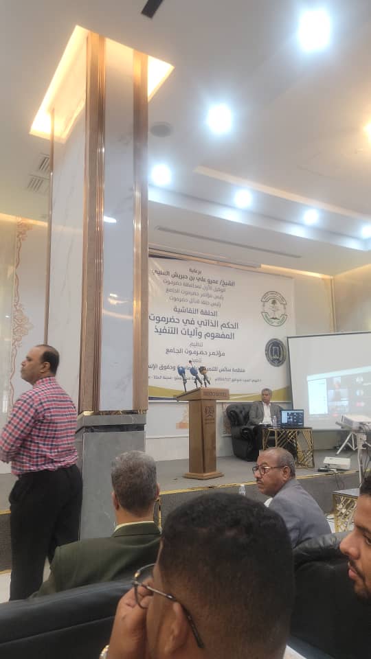 بدأت صباح اليوم بمدينة المكلا أعمال الحلقة النقاشية حول الحكم الذاتي لحضرموت ، التي ينظمها مؤتمر حضرموت الجامع وتنفذها منظمة سائس للتنمية الدبلوماسية وحقوق الإنسان تحت عنوان : «الحكم الذاتي في حضرموت.. المفهوم و آليات التنفيذ».
