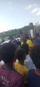 وألقى رئيس اللجنة الميدانية للتصعيد علي محمد بن شحنة كلمة حذر فيها أي محاولات ومخططات لعودة إغلاق البحر الذي وصفه بملك لكل الأجيال.