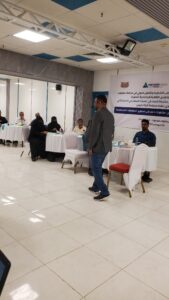وقدم عاطف الهمداني ممثل عن منظمة شراكاء اليمن نبذة تعريفية عن المشروع مطلع الحضور على تفاصيل المشروع الذي سينفذ في أربع محافظات ، والتحديات والصعوبات الذي تواجها النساء.