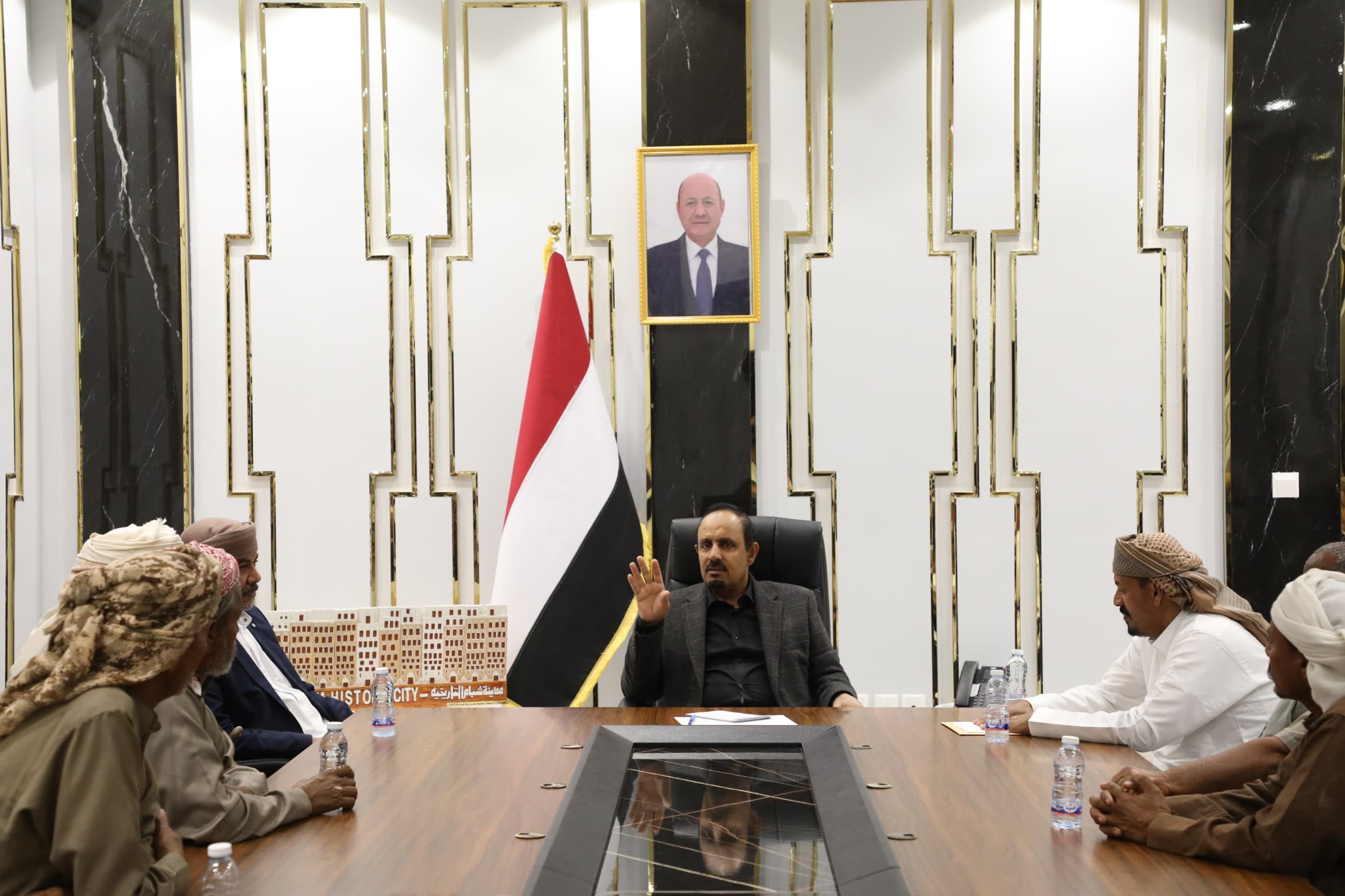 واستمع المحافظ الى احتياجات ومطالب أبناء المديريات الصحراوية وعلى وجه الخصوص في قطاعات المياه والكهرباء والطرق، مشيدًا بمواقفهم المساندة للدولة، مؤكدًا اهتمام السلطة المحلية بمديريات الشريط الصحراوي.