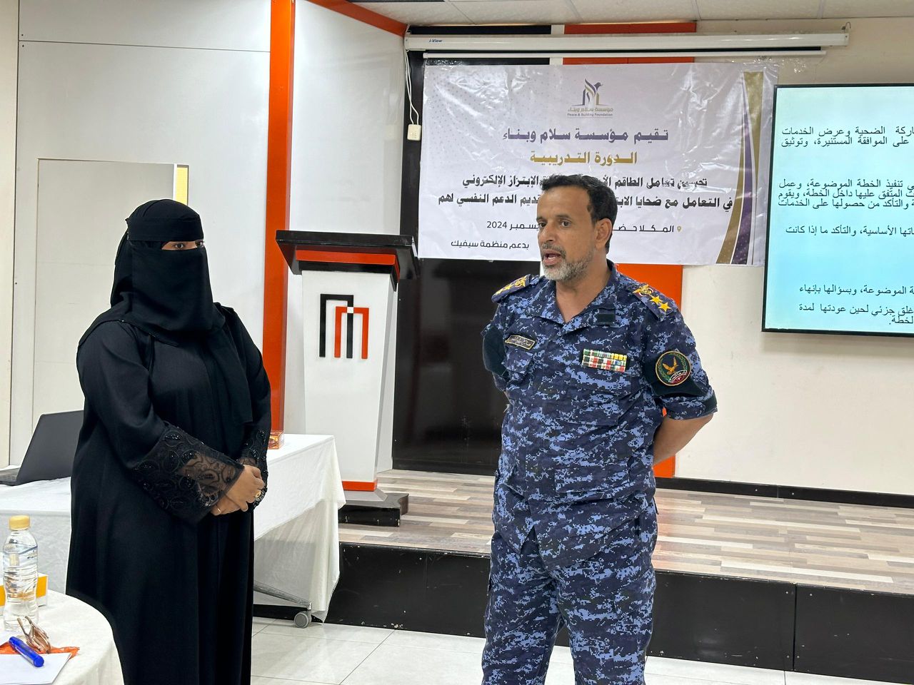 من جانبها، رحبت المدير التنفيذي لمؤسسة سلام وبناء، الأستاذة سمية السباعي، بالعقيد المشجري، وقدمت شرحًا وافيًا عن أهداف الدورة التدريبية وأهميتها في تحسين قدرات العاملين في القطاع الأمني، بما ينعكس إيجابًا على خدمة المواطنين وتعزيز الثقة بين المجتمع والأجهزة الأمنية.