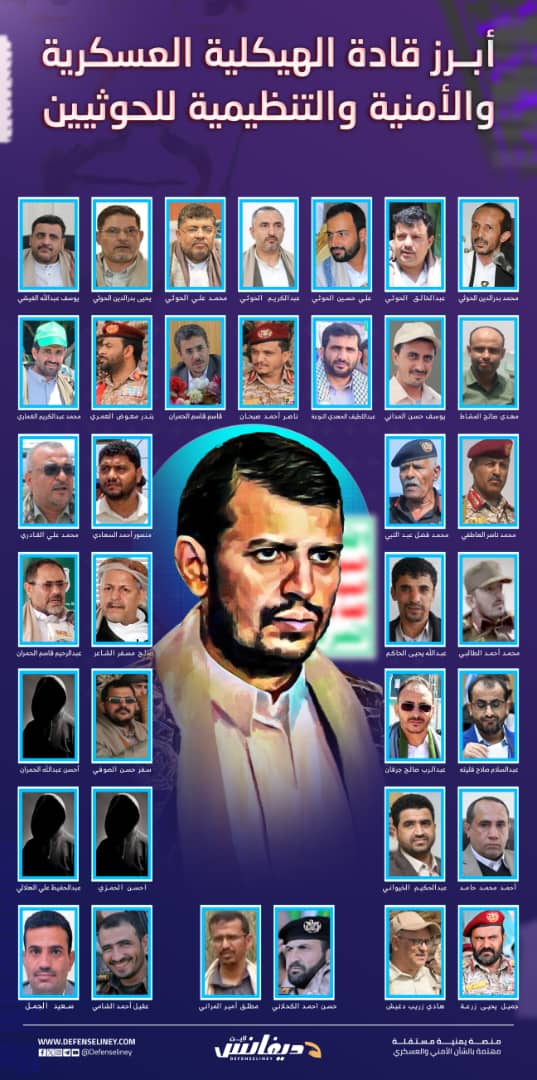 وأشار “ديفانس لاين” وهو أول منصة يمنية مهتمة بالمجال العسكري والأمني في اليمن إلى أن المجلس العسكري و”الجهادي” للحوثيين يتشكل من قادة بعضهم لهم قرابة بالحوثي، معظمهم هاشميون ينتمون إلى صعدة تم تعيينهم في أهم مفاصل البنية العسكرية والأمنية، مع أن تركيبة الجماعة قامت على أساس عسكري أمني، وكذلك معظم قادة هياكلها وكياناتها.