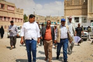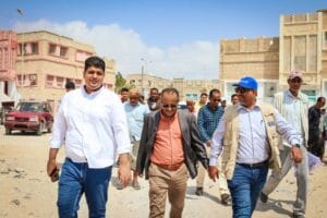 سلم وكيل محافظة حضرموت للشؤون الفنية المهندس أمين سعيد بارزيق ومدير عام مكتب وزارة الأشغال العامة والطرق بساحل حضرموت المهندس صالح فائز العمري ومدير عام مديرية الشحر الأستاذ عادل أحمد باعكابة مشروع رصف شوارع حي السلام بالشحر على ثلاث مراحل لممثل مكتب الأمم المتحدة لخدمة المشاريع للمحافظات الشرقية المهندس احمد عبيد الميسري ومدير مشروع الأشغال العامة عبدالرحيم حوري .