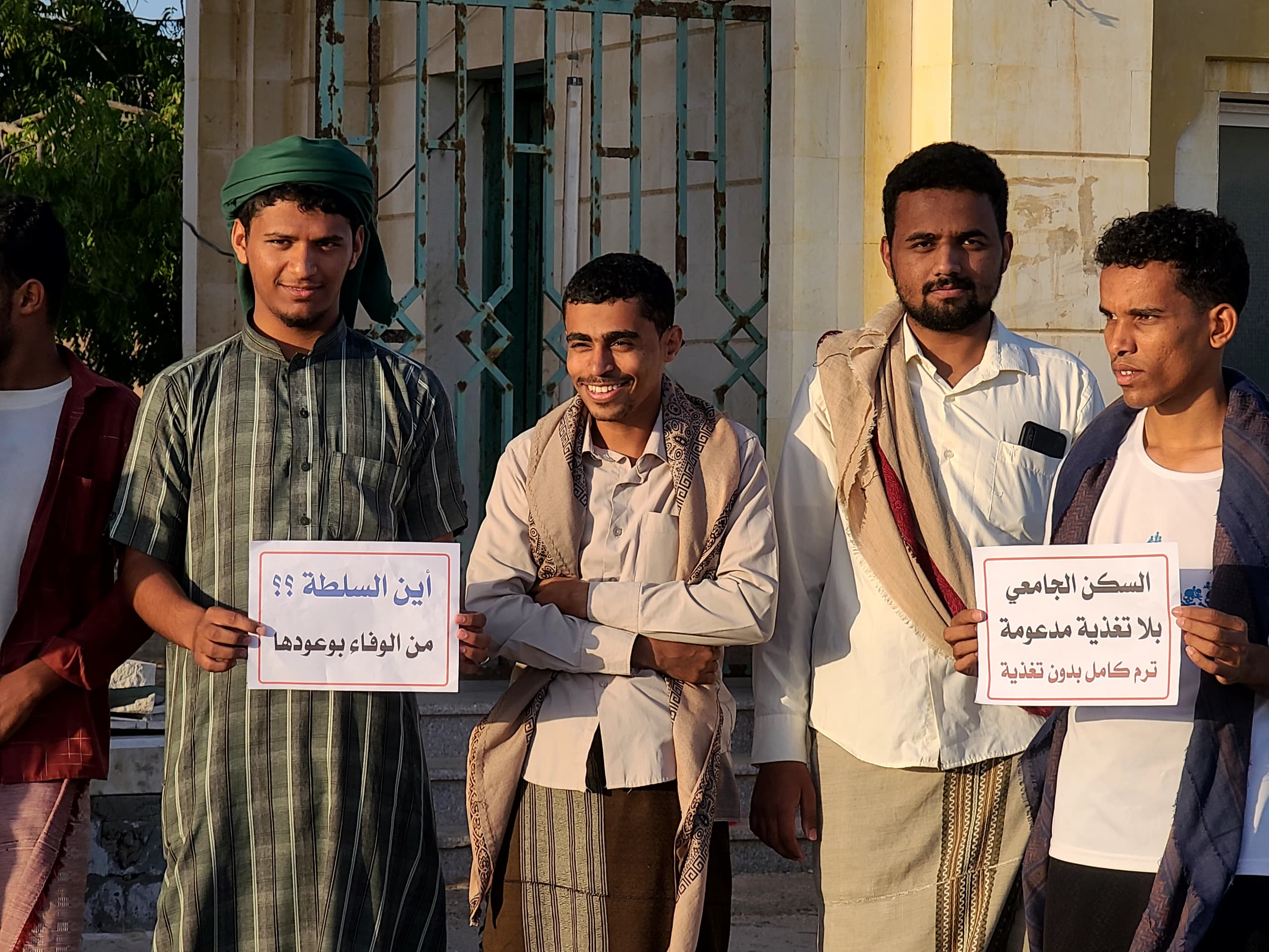 نظمت لجان السكنات التابعة لجامعة حضرموت وقفة مطالبة ومناشدة نتيجة انقطاع التغذية عن السكنات الطلابية منذ بداية العام الدراسي، حيث مر نصف عام دراسي من دون اي وجود للتغذية،