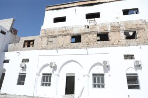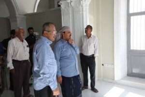 واطلع المحافظ والوزير على أعمال التأهيل التي نفذتها مؤسسة دوعن للعمارة، عبر معلّمي بِناء أكفاء على ذات النمط المعماري للمبنى التاريخي، وبإشراف مهندسي المؤسسة، والتدخلات بمواد بناء ذات جودة عالية مع الالتزام بالنمط المعماري السابق للمبنى الذي يعدّ أحد معالم إدارة الحُكم بالمحافظة.