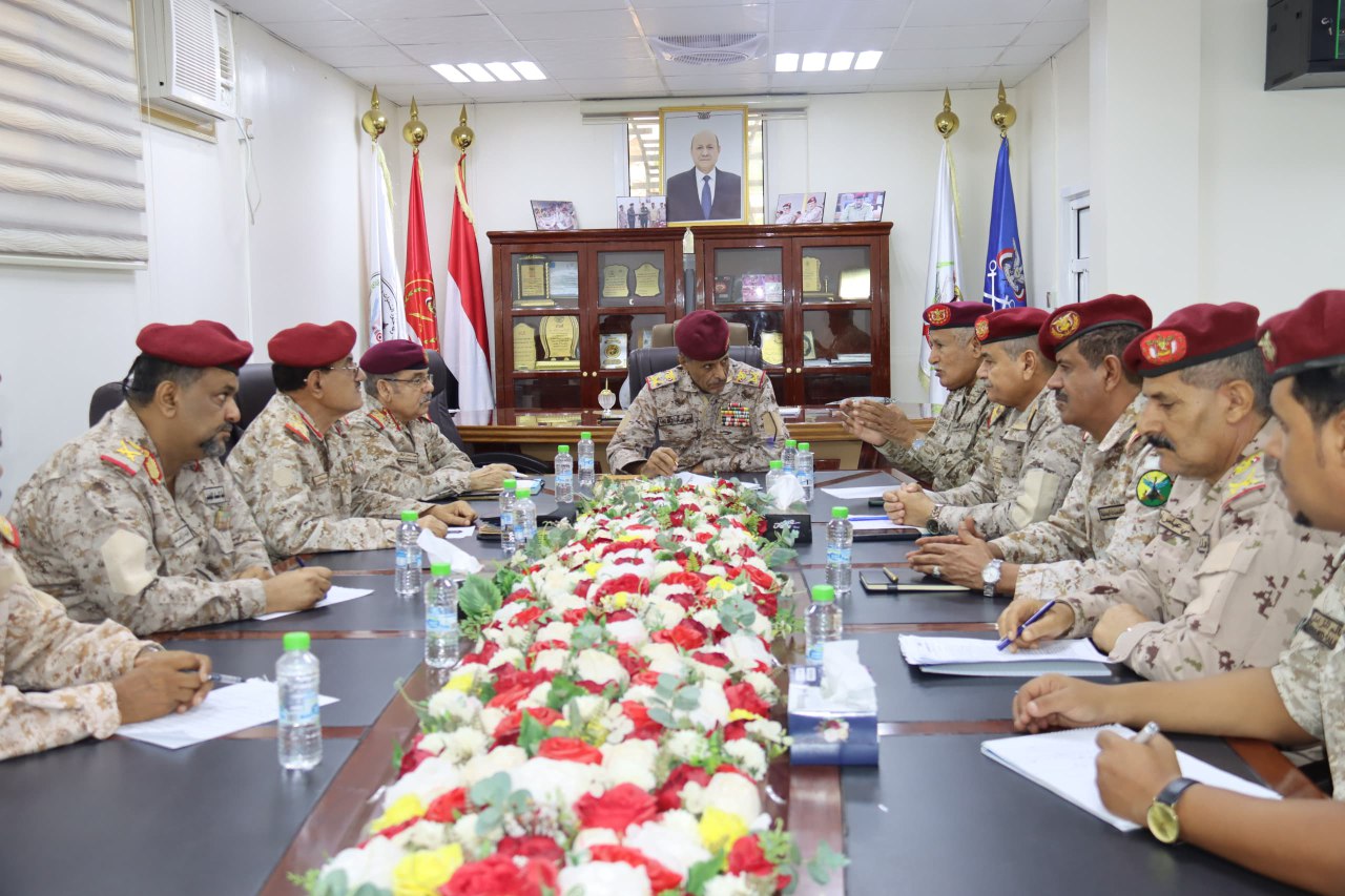 ووقف الاجتماع بحضور مساعد وزير الدفاع اللواء الركن صالح حسن ورئيس هيئة الاستخبارات اللواء الركن احمد اليافعي ورئيس هيئة القوى البشرية اللواء الركن احمد المرزوقي وقائد الشرطة العسكرية اللواء الركن محمد الشاعري ونائب المفتش العام اللواء الركن مسفر الحارثي على اخر المستجدات الميدانية والاستعدادات لتدشين العام التدريبي الجديد 2025.