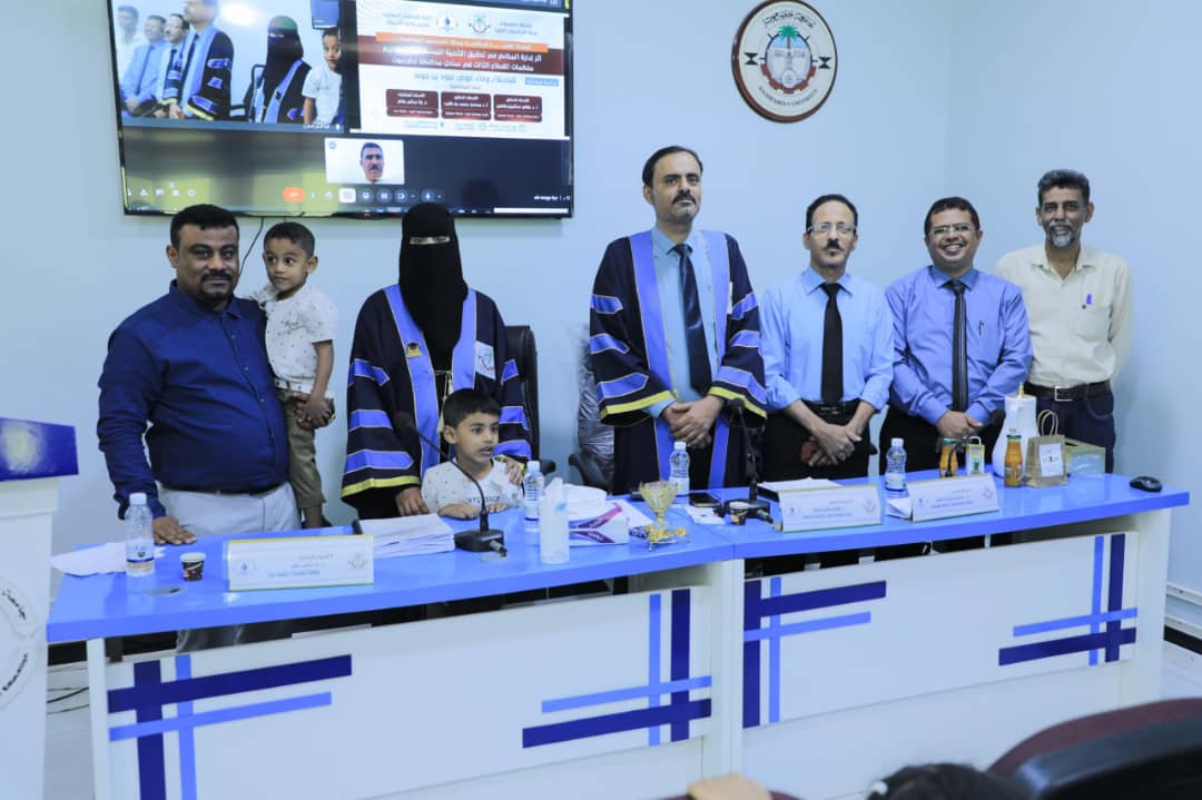 وتكونت لجنة المناقشة من نخبة من الأكاديميين ضمت رئيس اللجنة والمشرف العلمي للباحثة من جامعة حضرموت الأستاذ الدكتور محسن محمد بن كليب و عضو اللجنة ومناقش داخلي الأستاذ الدكتور هاني سالمين بلعفير، إضافة الى مناقش خارجي من جامعة عدن الأستاذ المشارك الدكتور رنا سالم صالح عضو اللجنة .