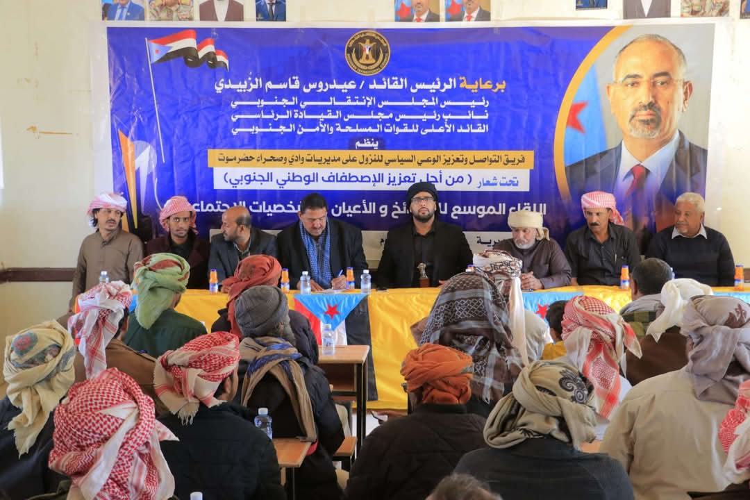 وأكد السقاف أهمية التعاون المجتمعي كعامل أساسي لدعم جهود الاستقرار والتنمية، مشيرًا إلى أن التواصل المستمر بين القيادة والمجتمع يعزز الوعي السياسي، ويشكل قاعدة صلبة لتحقيق الأهداف الوطنية وفي مقدمتها بناء دولة جنوبية مستقلة، موضحًا أن هذه اللقاءات تهدف إلى تعزيز التفاهم المشترك بما يخدم مصلحة الجنوب وقضيته العادلة.