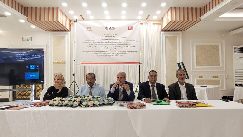 بحضور وكلاء وزارة الصحة العامة والسكان الدكتور شوقي الشرجبي وكيل قطاع الطب العلاجي والدكتور أحمد الكمال وكيل قطاع التخطيط دشن وكيل قطاع السكان الدكتور سالم الشبحي ورشة المصادقة على دليل المعايير الأكاديمية الوطنية المرجعية (NARS) لدبلوم القبالة ضمن خطة تحديث منهج القبالة التقنية