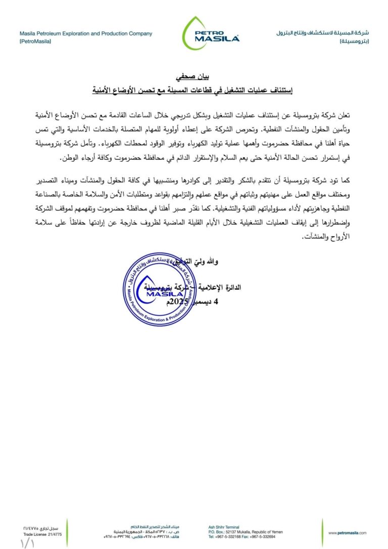 (عاد/المكلا) إعلام القيادة المحلية بحضرموت: