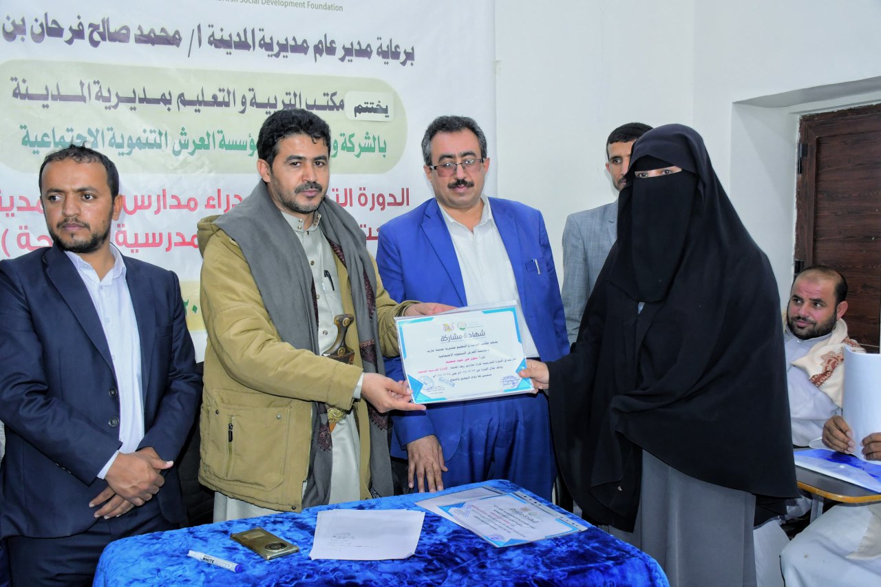اختتمت مؤسسة العرش التنموية الاجتماعية، اليوم، دورة تدريبية خاصة ببناء القدرات الإدارية لمديري المدارس في ريف مديرية مدينة مأرب.