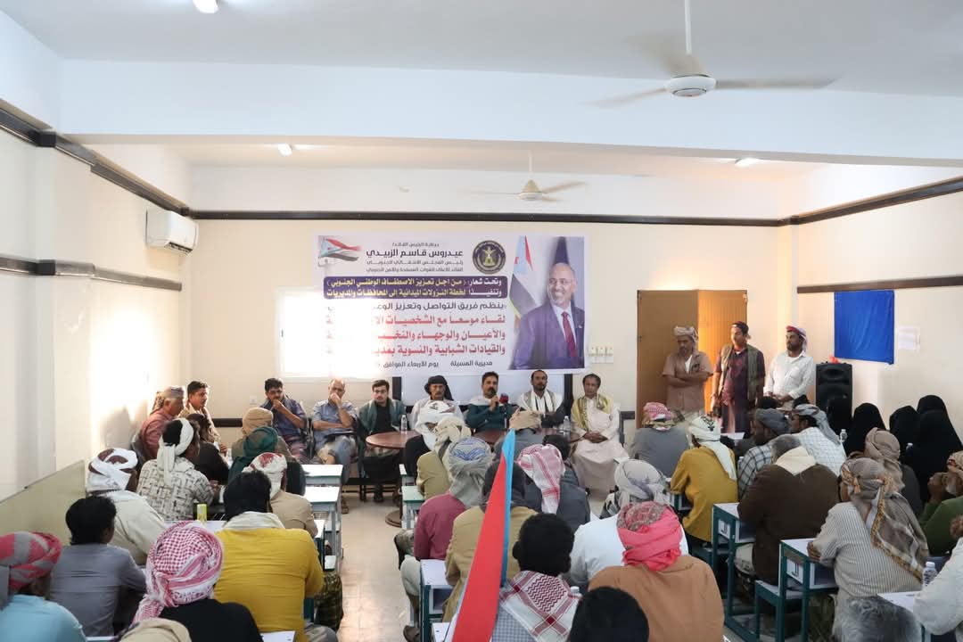 يأتي هذا اللقاء في إطار جهود المجلس الانتقالي الجنوبي لتعزيز التواصل المباشر مع المواطنين ، والاستماع إلى تطلعاتهم ومناقشة السبل الكفيلة بتحقيق الاستقرار والتنمية في المنطقة.