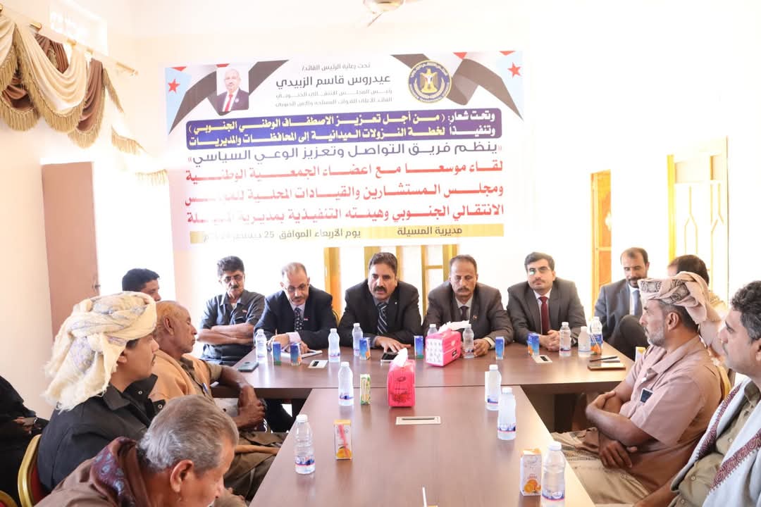 في إطار برنامج النزولات الميدانية بمحافظة المهرة، نظم فريق التواصل وتعزيز الوعي السياسي اجتماعاً موسعاً في مديرية المسيلة، حضره أعضاء الجمعية الوطنية، ومجلس المستشارين، والقيادة المحلية والهيئة التنفيذية بالمديرية .
