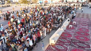 واكتضت الساحة العامة للاحتفالات بحضور كبير من الأهالي يتقدمهم قيادات في السلطة ووجهاء وشخصيات اجتماعية الذين حرصوا على مشاركة العرسان فرحتهم بالزواج ومتابعة فقرات مباهج فعاليات الحفل المسائي الذي تتضمن فقراته على وصلات متنوعة بمشاركة فرقة البندر للمسرح الكوميدي والمنشدين سالم عبدالله وبير وحاتم عارف الجرو وفرقة الملاح باطائع للألعاب الشعبية بالحامي..