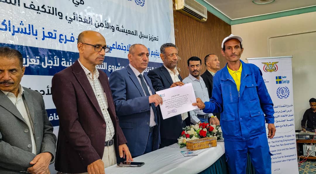 كرم وكيل محافظة تعز الدكتور عبدالقوي المخلافي، اليوم، خريجي مشروع التلمذة المهنية في مديرية المعافر (المرحلة الثانية) والذي ينفذه الصندوق الإجتماعي للتنمية بالشراكة مع منظمة العمل الدولية .