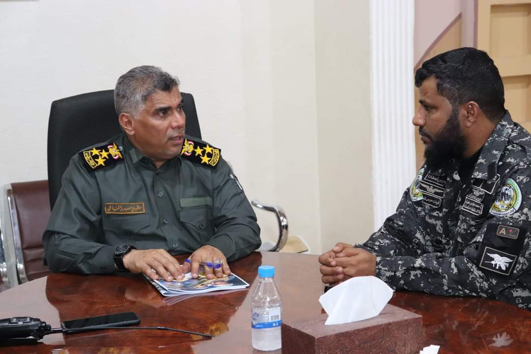 استقبل المدير العام لأمن وشرطة ساحل حضرموت، العميد مطيع سعيد المنهالي، اليوم الأحد في مكتبه، قائد قوات حماية المنشآت الحكومية في العاصمة عدن العميد أحمد مهدي بن عفيف، والوفد المرافق له .