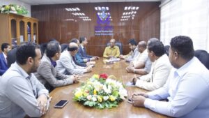 وفي إطار الزيارة، التقى فريق التواصل المدير العام لمكتب الجمارك بالميناء، الأستاذ حبشي نصيب، واطلعوا على سير عمل المكتب والصعوبات التي تواجهه.