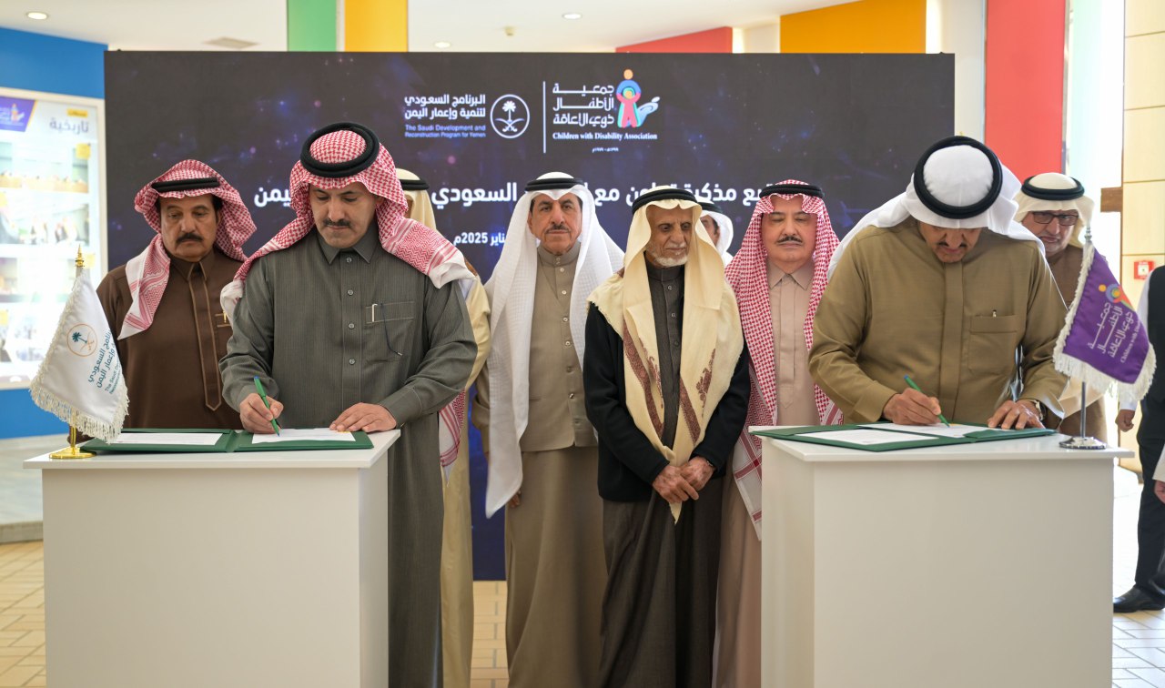 وقع البرنامج السعودي لتنمية واعمار اليمن، ومجلس إدارة جمعية الأطفال ذوي الإعاقة، اليوم، في العاصمة السعودية الرياض، مذكرة تعاون مشترك بين الجمعية والبرنامج.