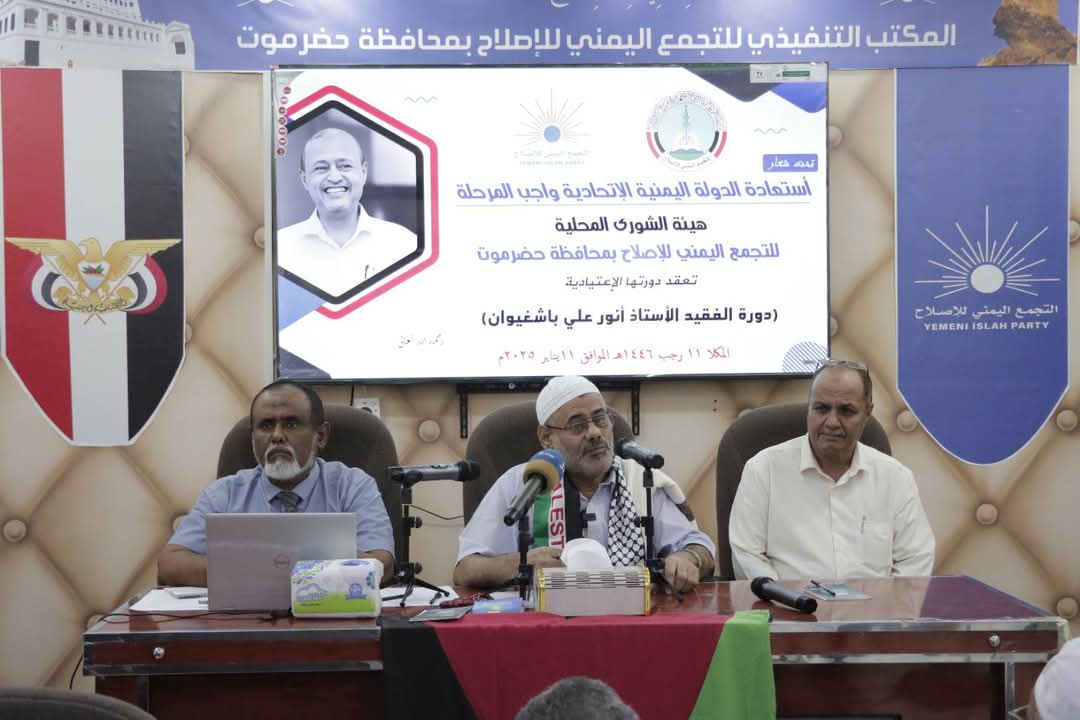 وانطلقت أعمال الدورة الاعتيادية، دورة الفقيد أنور علي باشغيوان رحمه الله، أمين المكتب التنفيذي للإصلاح بوادي حضرموت، بمدينة المكلا، تحت شعار “استعادة الدولة وبناء اليمن الاتحادي”.