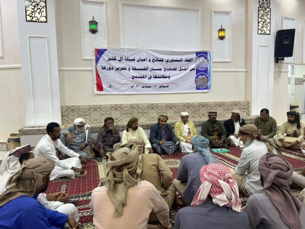 عقد، صباح اليوم الإثنين 13/ مارس/ 2023م، بمدينة سيئون لقاء تشاوري جمع مشائخ ووجهاء قبيلة آل كثير بمحافظة حضرموت؛ لتدارس أوضاع القبيلة، والتشاور حول أولويات ترتيب أوضاعها بعد أن أصبحت هدفا لمحاولات جرها لصراعات سياسية والنأي بها بما يعزز أوضاع القبيلة ومكانتها وتفعيل دورها الريادي.