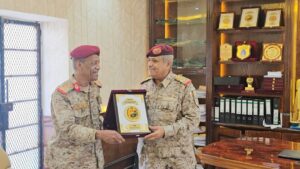وبدوره، كرّم مدير الأكاديمية العسكرية العُليا؛ قائد المنطقة العسكرية الثانية، بدرع الأكاديمية، نظير ما يبذله من جهود وطنية في تطوير الكوادر العسكرية، وابتعاثهم للأكاديمية العسكرية العُليا بالعاصمة عدن.