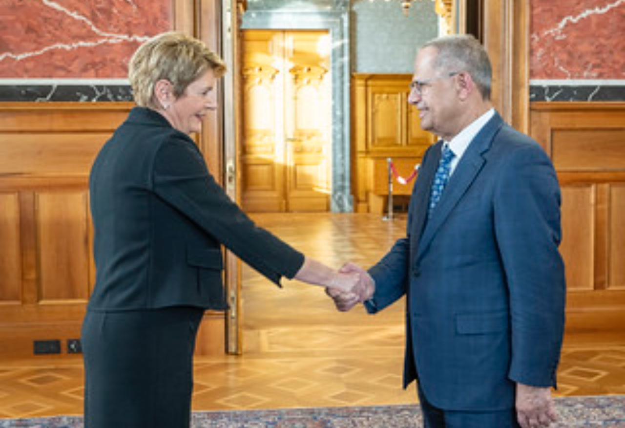 وأشادت الرئيسة السويسرية، في كلمتها بالعلاقات الدبلوماسية المتينة التي تربط بلادها بالدول الصديقة..مؤكدة على أهمية تعزيز التعاون المشترك لتحقيق السلام والتنمية.