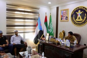 التقى رئيس الهيئة التنفيذية للقيادة المحلية للمجلس الانتقالي الجنوبي بمحافظة حضرموت، العميد الركن سعيد أحمد المحمدي، اليوم الأربعاء، بمكتبه بمدينة المكلا، رئيس تنفيذية انتقالي الشحر، الأستاذ عبده صادق الطفي.