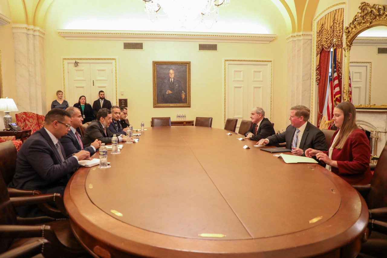 التقى رئيس الوزراء الدكتور احمد عوض بن مبارك، في ختام زيارة ناجحة للعاصمة الامريكية واشنطن، رئيس لجنة العلاقات الخارجية بمجلس الشيوخ الأمريكي السيناتور جيمس ريتش، وناقش اللقاء العلاقات الثنائية وسبل تعزيزها، والشراكة القائمة بين البلدين لضمان امن واستقرار اليمن والمنطقة وممرات التجارة الدولية في خليج عدن والبحر الأحمر، ومكافحة الارهاب.