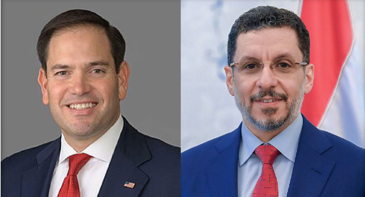 تلقى رئيس مجلس الوزراء الدكتور أحمد عوض بن مبارك، اتصالاً هاتفياً من وزير خارجية الولايات المتحدة ماركو روبيو، لبحث التعاون والتنسيق بين حكومتي البلدين للتعامل مع اعتداءات مليشيات الحوثي الارهابية وتهديدها لأمن واستقرار اليمن والمنطقة والمصالح الدولية في البحر الأحمر، على ضوء قرار الادارة الامريكية بتصنيف مليشيات الحوثي منظمة إرهابية أجنبية.