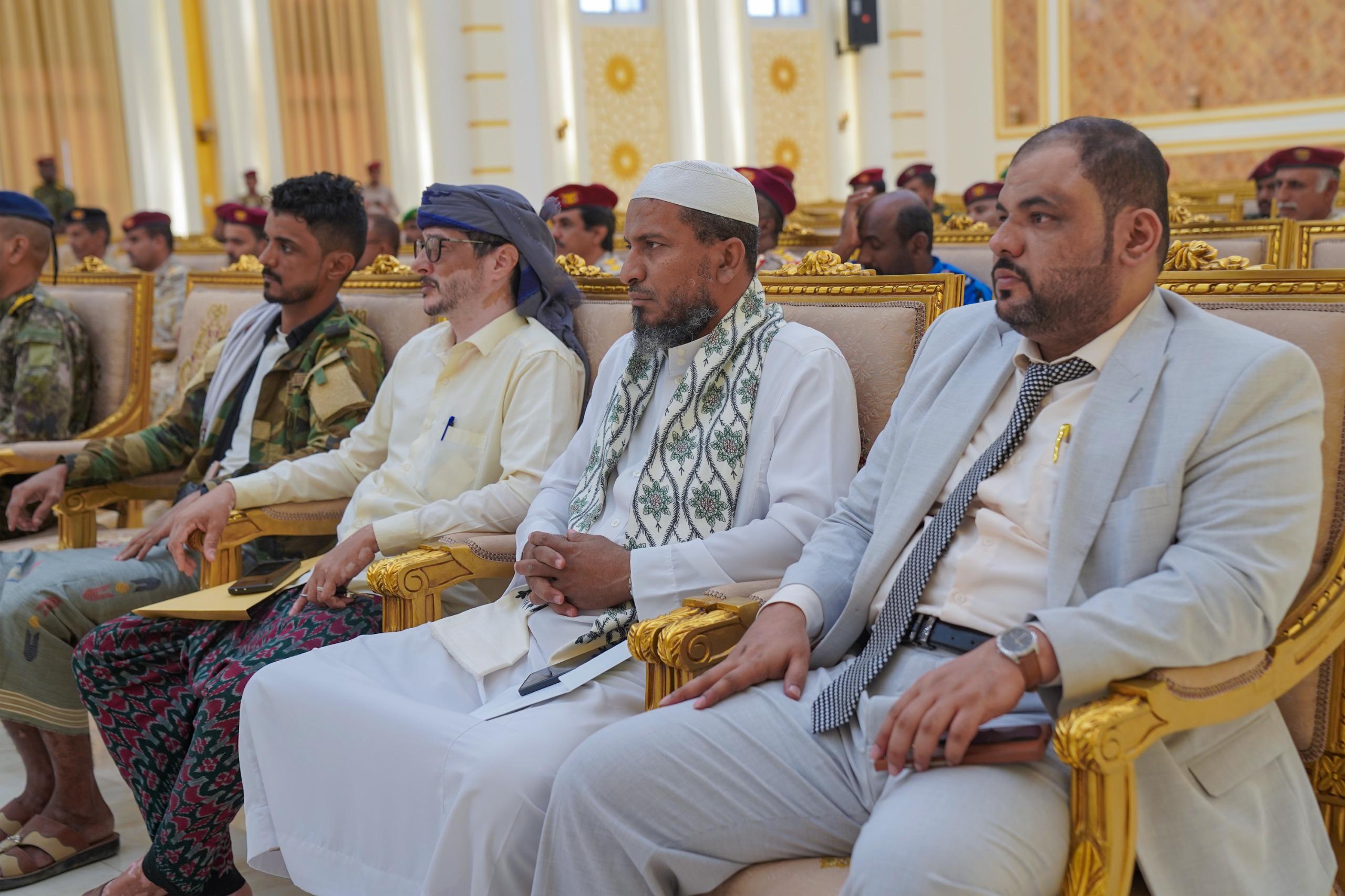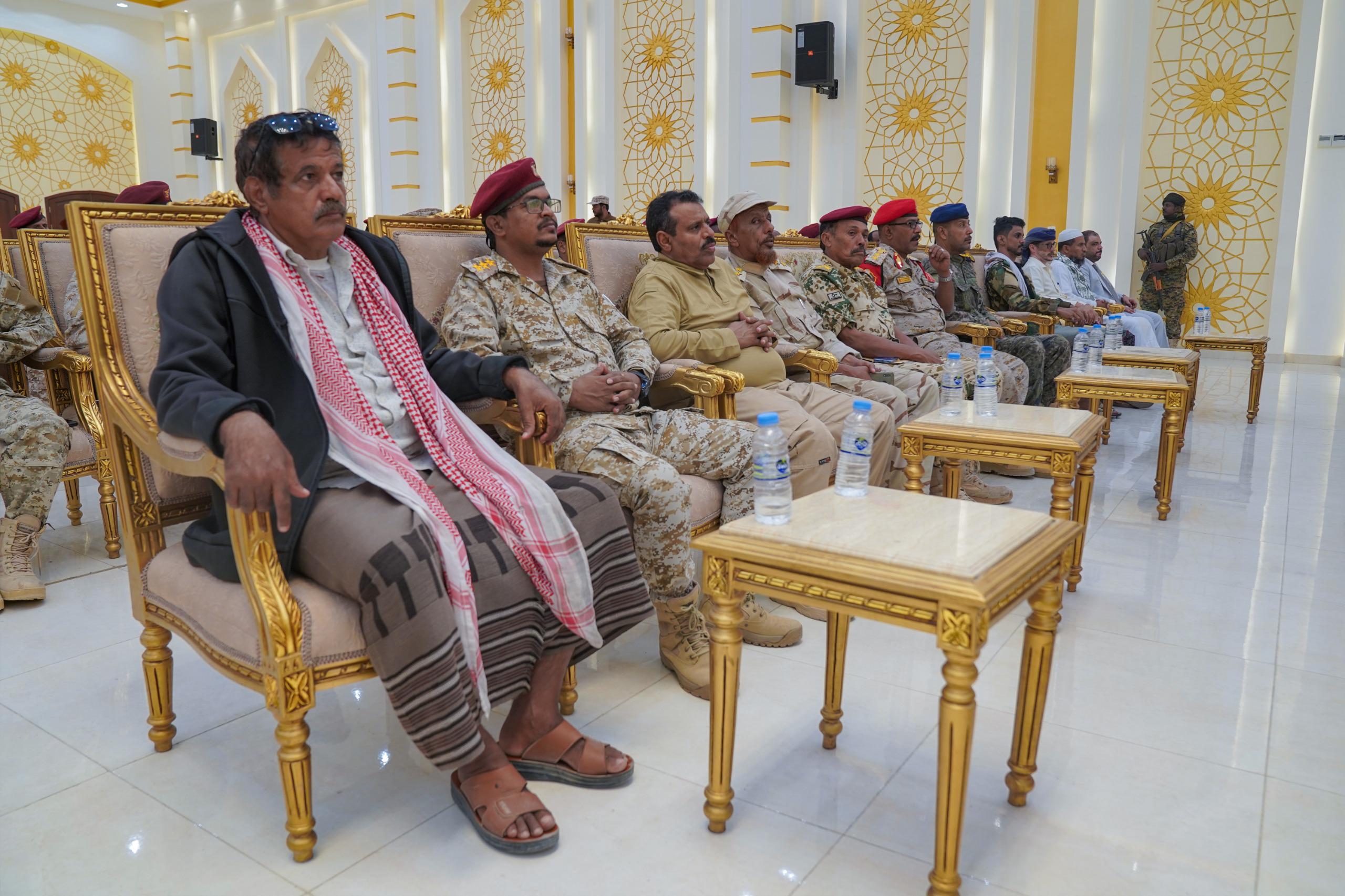 جاء ذلك خلال لقاء موسّع عقده نائب رئيس مجلس القيادة الرئاسي، مع القادة العسكريين والأمنيين بحضرموت، بحضور قائد المنطقة العسكرية الثانية اللواء الركن طالب سعيد بارجاش، والمدير العام للأمن والشرطة بساحل حضرموت العميد مطيع سعيد المنهالي، ورئيس الهيئة التنفيذية للقيادة المحلية للمجلس الانتقالي الجنوبي بمحافظة حضرموت العميد سعيد المحمدي، وبحضور عدد من الشخصيات المجتمعية والعلماء والدعاة الأفاضل، مشيرًا إلى أن هذا اللقاء يأتي تدشينًا للقاءات تستمر خلال الأيام القادمة مع مختلف القوى والمكونات السياسية والقبلية والمجتمعية، نظرًا للتضحيات التي قدمتها القيادة العسكرية والأمنية في سبيل تحرير ساحل حضرموت من عناصر تنظيم القاعدة الإرهابي، وتثبيت الأمن والاستقرار في المحافظة.