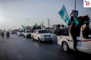 في لوحة وطنية تعكس عمق التلاحم مع القضية الفلسطينية، شهدت مدينة الشحر عصر اليوم الجمعة مسيرة جماهيرية حاشدة نظّمها ملتقى شباب نصرة غزة، حيث جابت المركبات والدراجات النارية شوارع المدينة في عرض رمزي يجسد صمود المقاومة الفلسطينية.