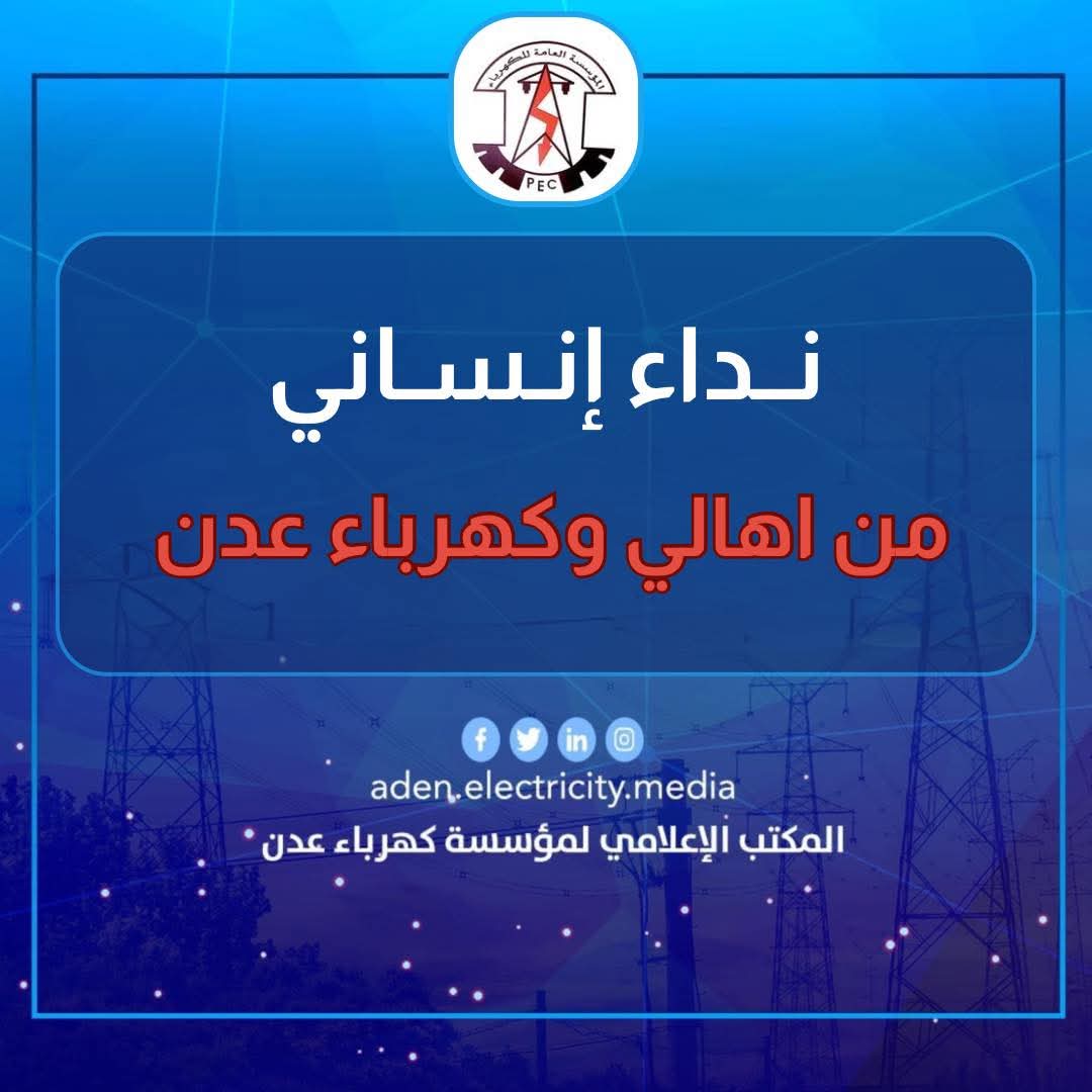 أطلق أهالي العاصمة عدن والمؤسسة العامة للكهرباء نداء إنسانيًا عاجلًا إلى الشيخ عمرو بن حبريش العليي، رئيس حلف قبائل حضرموت، للتدخل الفوري وتوجيه أوامره بضخ النفط الخام إلى محطة الرئيس في عدن، وذلك قبل توقفها المتوقع خلال الساعات القادمة. ويُخشى أن يؤدي هذا التوقف إلى إغراق المدينة في ظلام دامس، مما سيفاقم معاناة المواطنين في ظل الأوضاع المعيشية الصعبة التي تشهدها عدن.