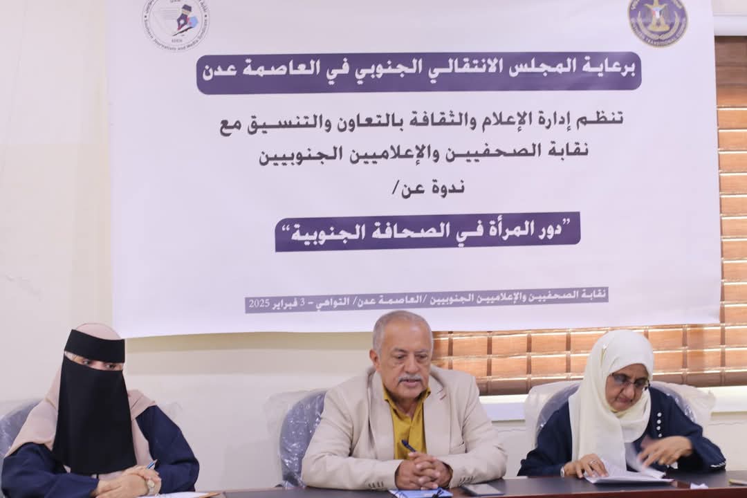 وفي افتتاح الندوة، أكد نقيب الصحفيين والإعلاميين الجنوبيين، عيدروس باحشوان، أهمية هذه الفعالية في تسليط الضوء على دور المرأة الجنوبية في المشهد الصحفي والإعلامي، مشيرًا إلى ضرورة دعمها وتمكينها لمواصلة مسيرتها المهنية والمساهمة في تعزيز الحريات الصحفية.