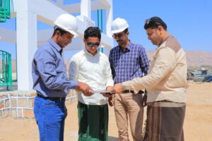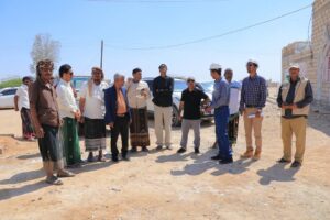 رافقهم في النزول كل من المهندس أحمد بامختار مدير مكتب التخطيط والمهندس زايد بن بريك مدير مكتب الزراعة و الأستاذ سعيد بن ضبيع مدير مكتب الصناعة و التجارة و المهندس أبوبكر بامطرف استشاري المشروع و المهندس محمد سالم لرضي فني المشروع و المهندس محمد الرويعي من الدائرة الهندسية بالادارة المحلية.