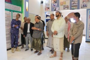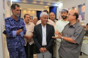 وفي ذات السياق قام المدير باعكابه ومرافقوه بجولة داخل أروقة مركز متحف الشاعر المحضار، مستمعين من الباحث الأستاذ رياض باشراحيل إلى شرح موجز عن مقتنيات المتحف ومايحتويه من صور وأغراض تخص الشاعر المحضار خلال مسيرته الفنية داخل الوطن وخارجه.